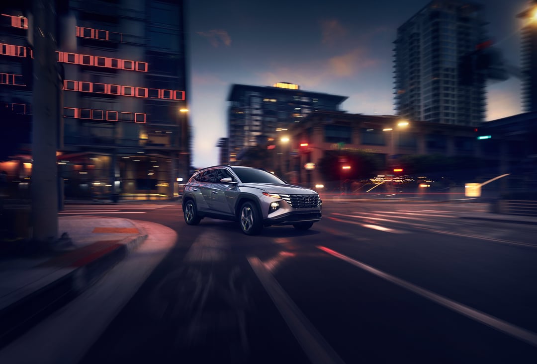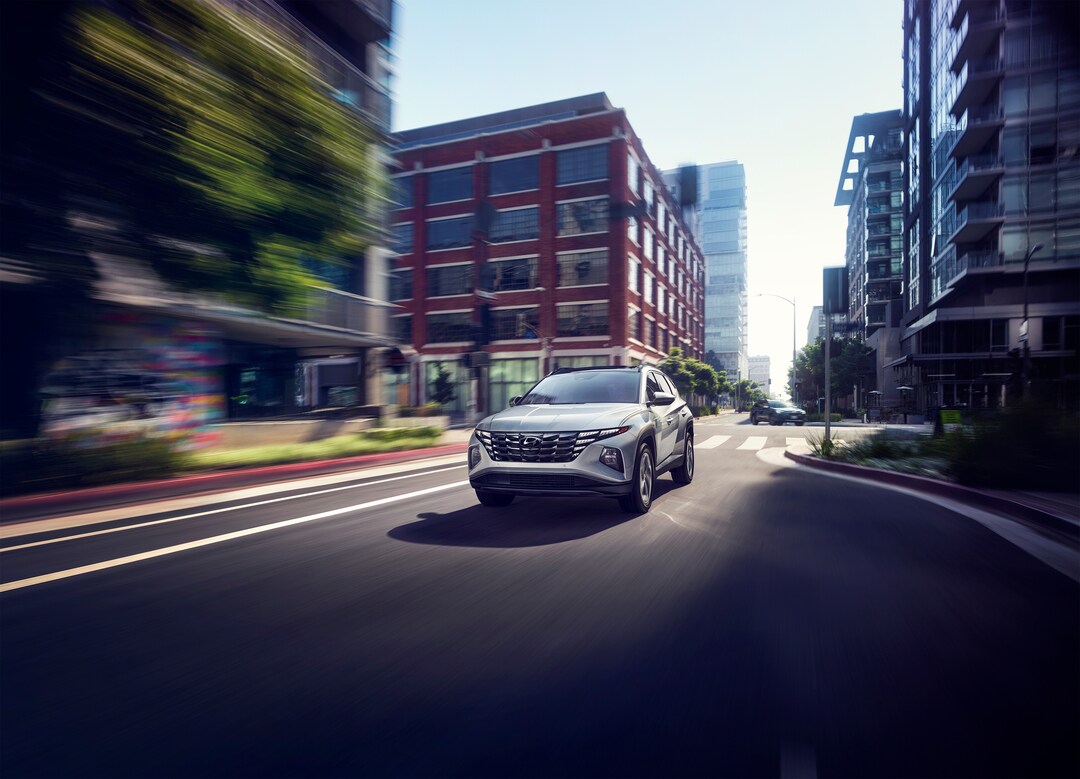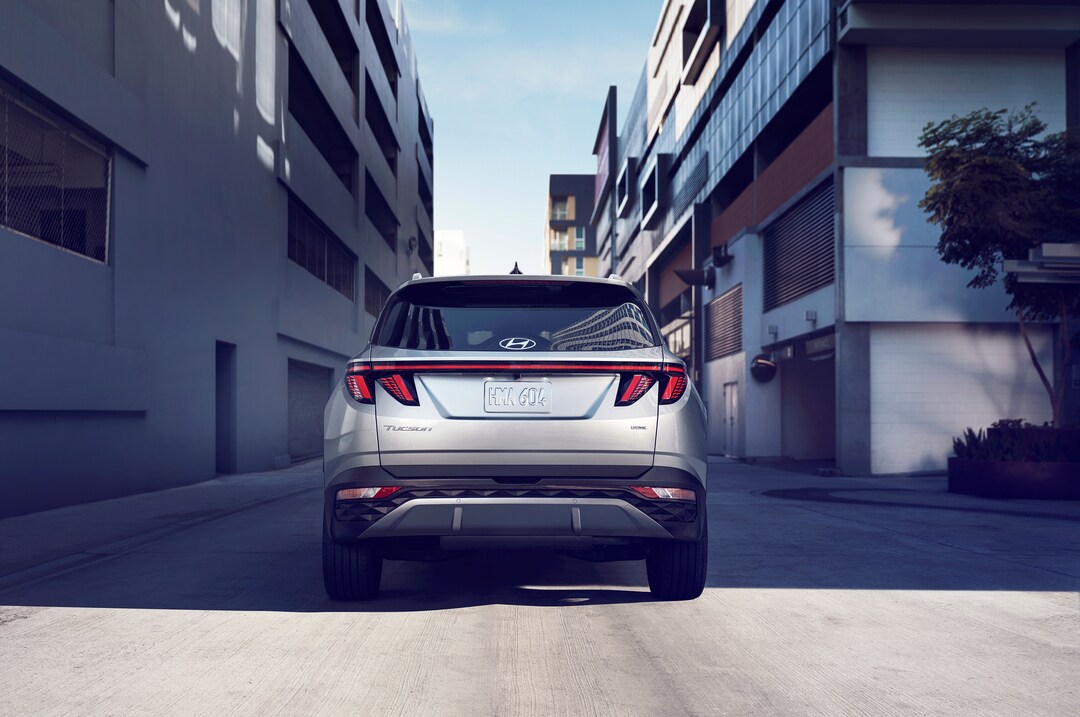 The Tucson's bold exterior design turns heads on the streets of Utica, NY. Its distinctive front grille, sleek lines, and sculpted body create a modern, sophisticated look. LED headlights and daytime running lights provide excellent visibility and add to the SUV's striking appearance. Available 19-inch alloy wheels, a hands-free smart liftgate, and a panoramic sunroof further enhance the Tucson's style and convenience.